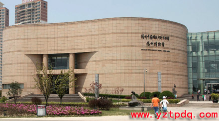 揚(yáng)州博物館,現(xiàn)稱揚(yáng)州雙博館,由揚(yáng)州中國(guó)雕版印刷博物館、揚(yáng)州博物館新館組成。位于揚(yáng)州新城西區(qū),自然風(fēng)光迷人的人工湖西測(cè),與揚(yáng)州國(guó)際展覽中心隔湖相望。雙博館的建筑外型充分體現(xiàn)了人與自然和諧統(tǒng)一,建筑與自然交融合一的設(shè)計(jì)理念。建筑博館總占地面積50730M2,建筑面積22146.99M2,陳展面積10000M2。
