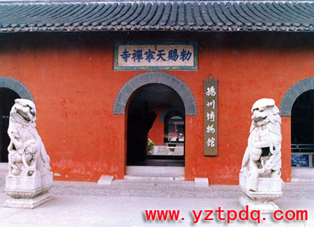 揚(yáng)州天寧寺是清代揚(yáng)州八大名剎之一。但它的歷史到底始于何時(shí),眾說(shuō)紛紜。最早的說(shuō)法,是說(shuō)唐代柳毅舍宅造寺,這個(gè)柳毅就是唐代傳奇《柳毅傳》中的主人公。柳毅是小說(shuō)中的人物,我們也許不必深究。普通的傳說(shuō),是東晉時(shí)謝安捐出別墅建寺,以供尼泊爾僧人佛馱跋陀羅在此翻譯《華嚴(yán)經(jīng)》。但是,對(duì)這一說(shuō)法學(xué)者也有不同的意見(jiàn)。比較可靠的說(shuō)法,應(yīng)該是《寶佑惟揚(yáng)志》所記載的,天寧寺始建于武則天證圣元年(695),以年號(hào)為名,最初稱(chēng)為“證圣寺”?!秾氂游P(yáng)志》是宋代編纂的揚(yáng)州志書(shū),與建寺時(shí)間較近,當(dāng)時(shí)寺廟的名聲又很大,當(dāng)不會(huì)有太大出入。北宋真宗大中祥符五年(1012),證圣寺改名“興教院”。宋徽宗政和二年(1112),全國(guó)重要州府均建“天寧寺”,所謂“建寺”也包括將原有的寺廟更名,于是賜予此寺“天寧禪寺”之名,從此沿襲至今。現(xiàn)在全國(guó)很多地方都有天寧寺,來(lái)歷就在于此。