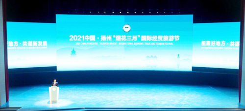 4月18日,2021中國(guó)·揚(yáng)州“煙花三月”國(guó)際經(jīng)貿(mào)旅游節(jié)開(kāi)幕式暨重大項(xiàng)目簽約儀式在運(yùn)河大劇院舉行。