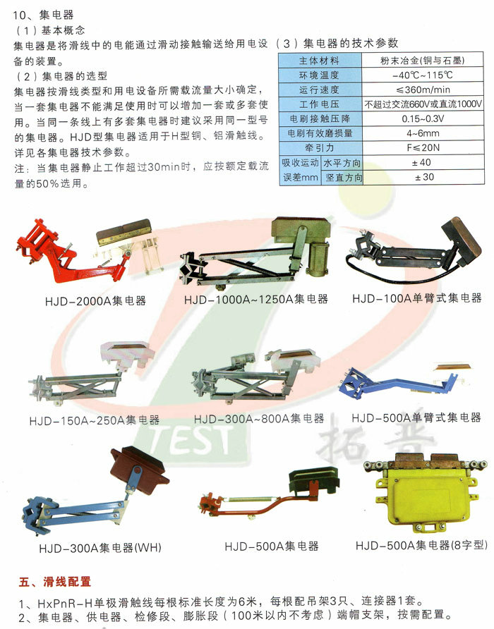 注:1、滑觸線標(biāo)準(zhǔn)長(zhǎng)度:6m。