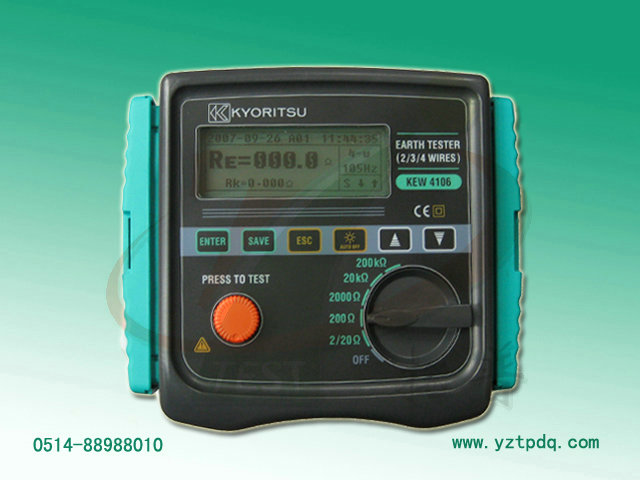 KEW 4106接地電阻測試儀是一款數(shù)字式智能化接地電阻測試儀,可進行測試環(huán)境參數(shù)測量Ust(干擾電壓),F(xiàn)st(干擾頻率)。具有數(shù)據(jù)傳輸(和PC連接),在PC端可進行數(shù)據(jù)處理分析功能。且防水防塵功能強,以防水防塵IEC60529(IP)為準(zhǔn),可在惡劣環(huán)境下進行測試。