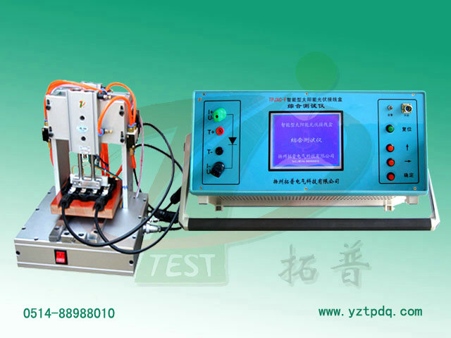 TPJXC-F太陽(yáng)能光伏接線盒終端測(cè)試儀可在線檢測(cè)太陽(yáng)能光伏接線盒里面的二極管。接線盒里面二極管的數(shù)量可以是1組、2組、3組、4組或5組,每個(gè)接線盒可一次性完成測(cè)試,并標(biāo)識(shí)不合格二極管的位置及參數(shù)。能滿足20-300W接線盒(6個(gè)二極管至1個(gè)二極管)的測(cè)試所需要求。該儀器廣泛應(yīng)用于太陽(yáng)能光伏接線盒和光伏組件生產(chǎn)廠家對(duì)接線盒電氣性能參數(shù)測(cè)試,大大提高了接線盒產(chǎn)品的性能與品質(zhì)。