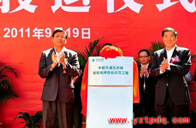 天津市委副書記、濱海新區(qū)區(qū)委書記何立峰和國家電網(wǎng)公司副總經(jīng)理、黨組成員欒軍共同為中新天津生態(tài)城智能電網(wǎng)綜合示范工程投運揭牌。中新天津生態(tài)城智能電網(wǎng)綜合示范工程是天津智能電網(wǎng)建設(shè)發(fā)展的標(biāo)志性工程。此工程遵循“可實行、可復(fù)制、可推廣”的規(guī)劃思路,努力構(gòu)建安全可靠、優(yōu)質(zhì)清潔、高效互動的能源供應(yīng)體系和服務(wù)體系。該工程投運后,不僅風(fēng)電、光伏發(fā)電等可再生能源利用率可達到20%以上,而且電網(wǎng)能實現(xiàn)和有線電視、IP電話、互聯(lián)網(wǎng)的相互融合,其遙控、遙測、信息反饋的智能化能力可做到從居民生活到公共設(shè)施,再到工業(yè)生產(chǎn)的全涵蓋。