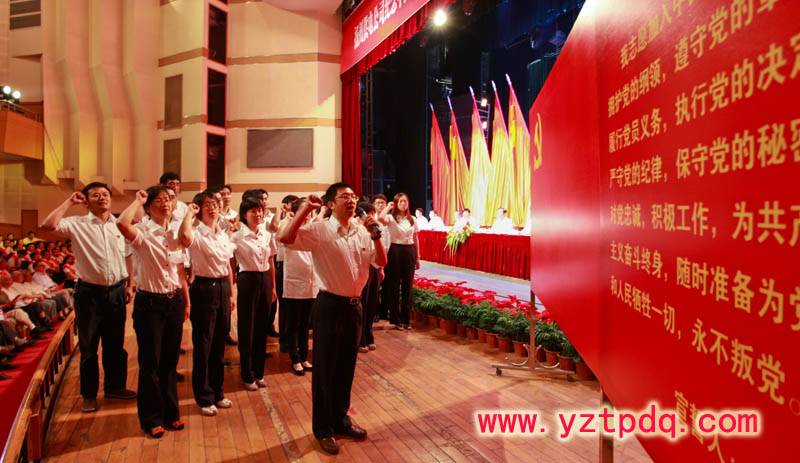 2012年6月28日上午,“我志愿加入中國(guó)共產(chǎn)黨,擁護(hù)黨的綱領(lǐng)……”揚(yáng)州供電公司管理第三黨支部的黨員在黨支部書(shū)記的帶領(lǐng)下,高舉右拳,佩戴黨徽,莊嚴(yán)宣誓。公司工會(huì)主席以普通黨員的身份參加了重溫誓詞活動(dòng)。
