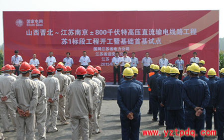 8月26日上午10時,山西晉北—江蘇南京±800千伏特高壓直流輸電線路工程蘇1標(biāo)段工程開工暨基礎(chǔ)施工首基試點活動在徐州豐縣趙莊鎮(zhèn)舉行。這標(biāo)志著首條由國網(wǎng)江蘇省電力公司負(fù)責(zé)建設(shè)管理的特高壓直流線路工程正式開建。