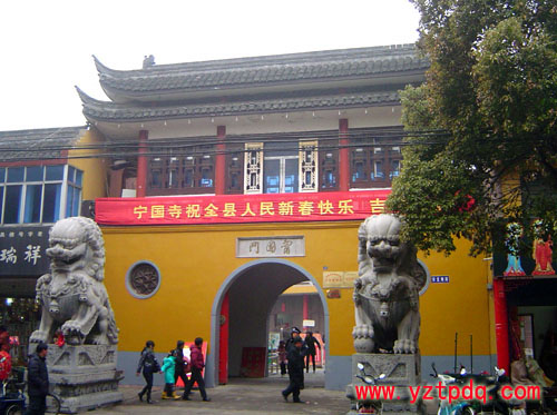 據(jù)寶應(yīng)縣志記載,寧國(guó)寺始建于唐貞觀十一年(637年),由無(wú)塵和尚開(kāi)山。原名寧國(guó)禪寺,后易名為寧國(guó)教寺,迄今已有1368個(gè)春秋。原址在大新橋東,葉挺路北側(cè)。面臨大街,背倚城墻,前后共六進(jìn),寺房計(jì)數(shù)百間,有“跑馬關(guān)山門(mén)”之說(shuō),乃淮東一大名剎。明朝時(shí)士子儒生讀書(shū)其中,入寺則書(shū)聲梵音洋洋可聽(tīng)。清兵入關(guān)后,因其規(guī)模宏闊常為過(guò)境和駐防兵士所據(jù)。“不幢幡而旌旗,不鐘鼓而刁斗,不梵語(yǔ)而鐃歌”,邑人劉中柱曾為之慨嘆。清道光六年一場(chǎng)大火,顏魯公所書(shū)寧國(guó)寺匾額亦隨之焚毀,令人扼腕?選近百年來(lái)頻遇人禍屢遭天災(zāi),古寺日漸凋敝。解放后改建為大眾電影院,所剩殿宇陸續(xù)拆毀,僅存一座蝴蝶廳,如今已破敗不堪。