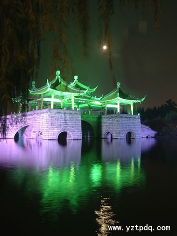 揚(yáng)州曾經(jīng)被稱為月亮城,一首“天下三分明月夜,二分無(wú)賴是揚(yáng)州”使揚(yáng)州占去了月亮三分之二的光輝。傳說(shuō),中秋夜在揚(yáng)州的五亭橋可以看到15個(gè)月亮。