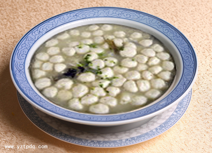玉珠藏丹就是夾心魚園,揚州高郵十大名菜之一。魚園象征玉珠,夾心的肉園為丹。巧妙地將魚肉結(jié)合在一起,使珠中藏肉味,丹外聞魚香。