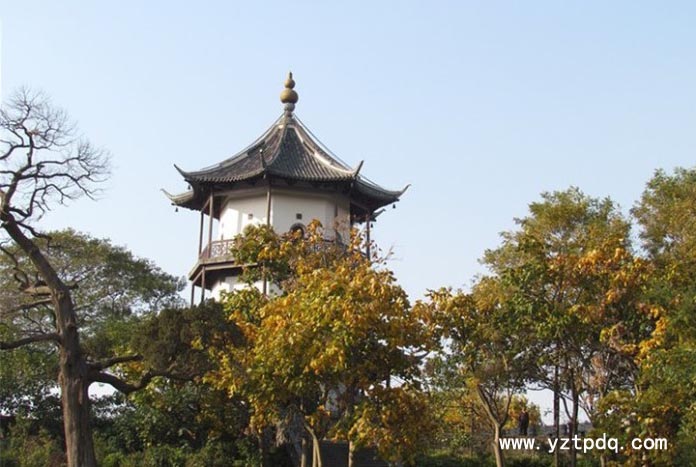 奎星閣建于城墻之上,為磚木結(jié)構(gòu)樓閣式,三級(jí)八面,高20米。第一層北面開門,二、三層四面有門。每層閣樓頂板上均有彩繪,或龍或鳳或蝙蝠,寓意吉祥幸福。登樓四望,視野開闊,高郵美景盡收眼底。登樓觀景,成為古代高郵文人的一大雅好。奎星閣四周遍植名木,其中一棵古松至今已有500多年歷史,老干虬枝,蒼勁挺拔。