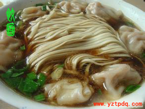陽(yáng)春面、餛飩,揚(yáng)州傳統(tǒng)面食。陽(yáng)春面,將水面在開水鍋里煮沸,撈出,澆上面湯、醬油、豬油或麻油、胡椒粉,蒜花拌成的湯汁,拌勻,吃到嘴里柔滑勁道,鮮香爽口;餛飩,薄薄的面皮包上新鮮肉泥后用手一勒,形成一只晶瑩剔透的餛飩,似含苞初放的花朵。煮餛飩的方法和陽(yáng)春面一樣,餛飩多了肉的香味。很多年前,喜歡美食的揚(yáng)州人想怎樣能同時(shí)吃到這兩種美味呢?聰明的廚師于是嘗試著將兩種食材同時(shí)做,結(jié)果出乎大家的意料,兩種美味結(jié)合,口感更加美妙,從此便有了揚(yáng)州特色小吃餃面。